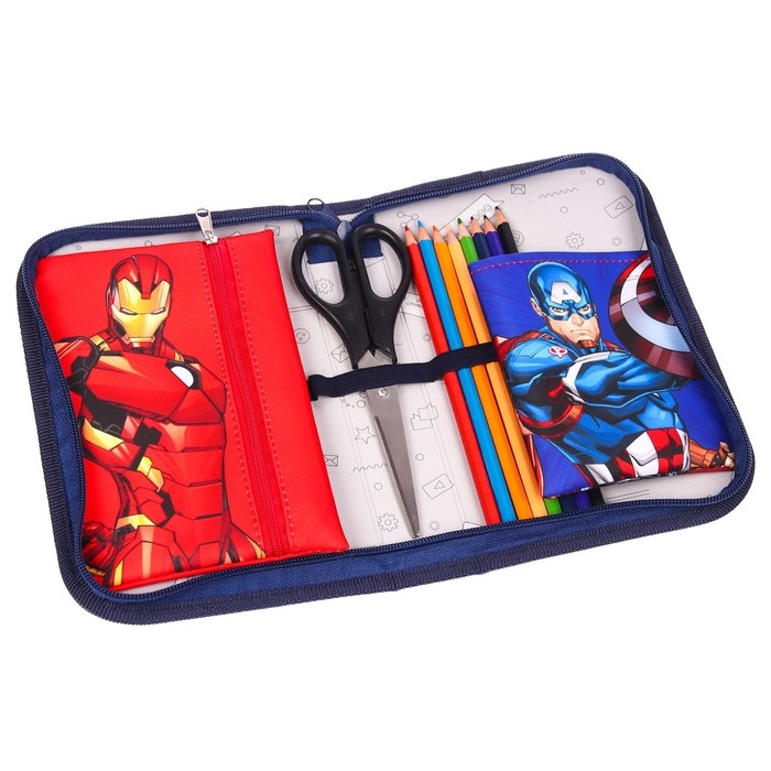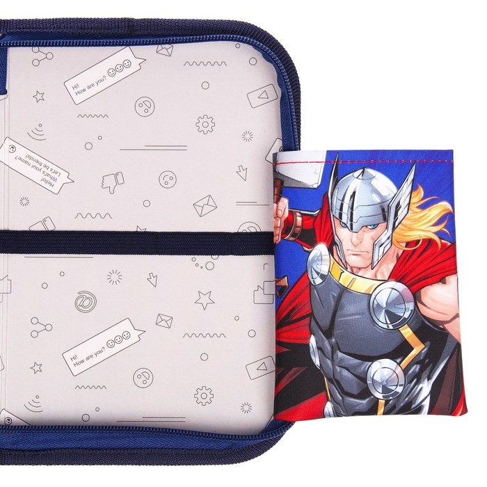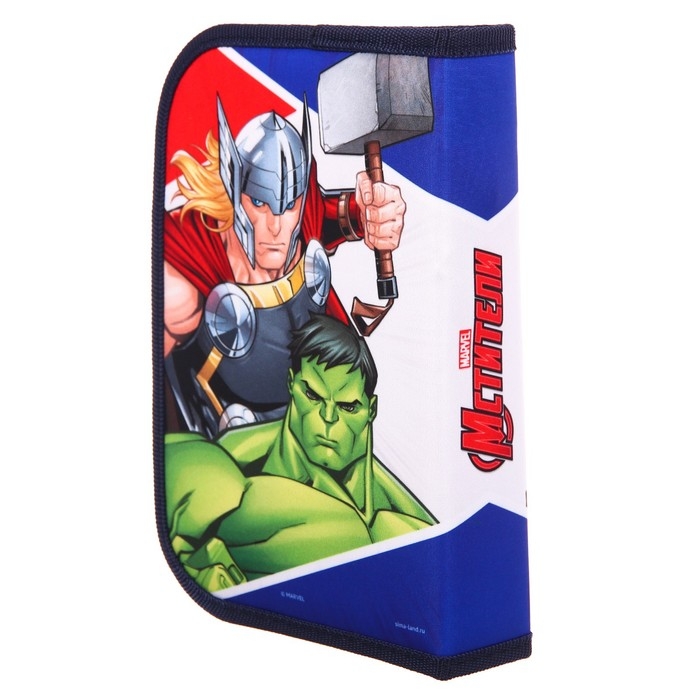 Пенал каркасный, 1 секция, 140х210х40 мм, откидной карман, тканевый, Мстители