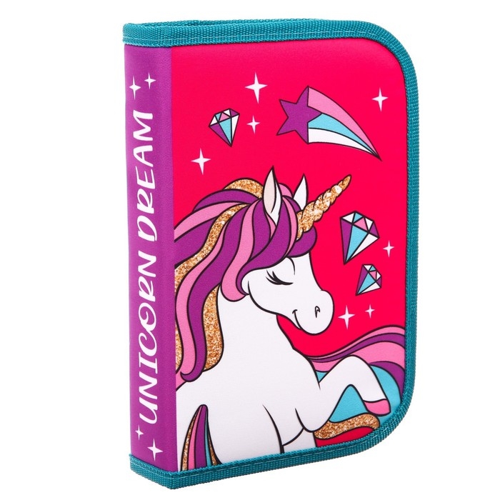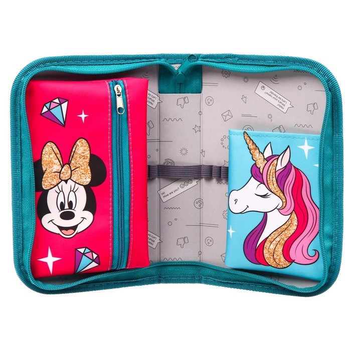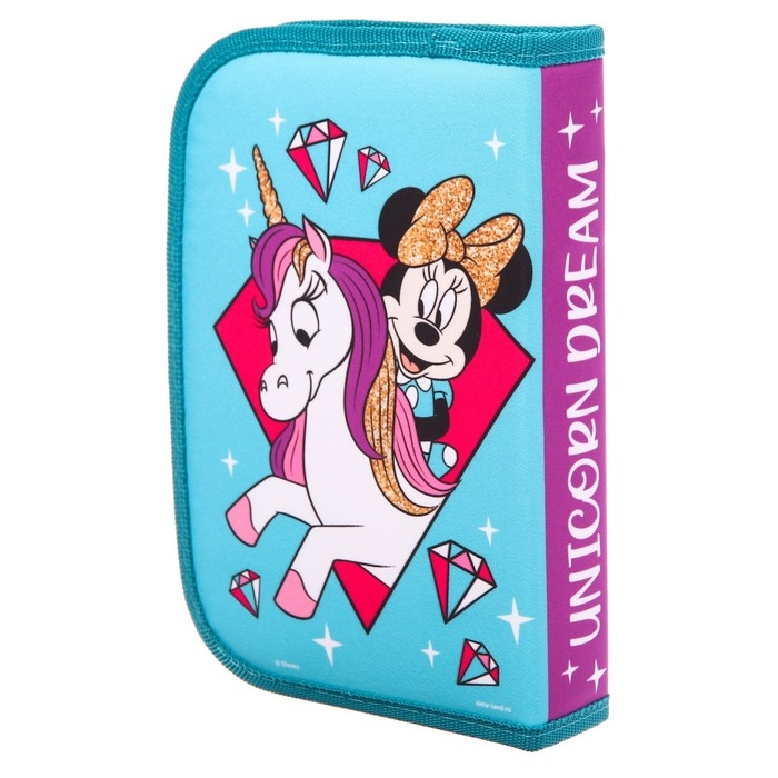 Пенал каркасный, 1 секция, 140х210х40 мм, откидной карман, тканевый, Минни Маус и единорог