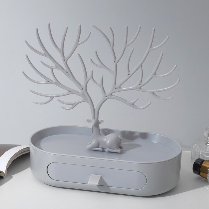 Подставка для украшений «Олень», овальная подставка, 26×25 см, цвет бело-серый