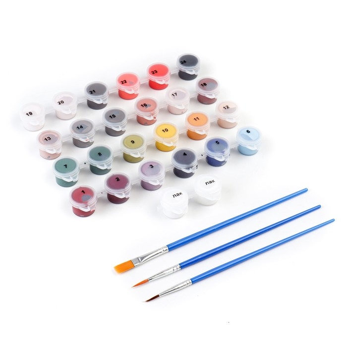 - В набор входят все необходимые оттенки красок. Баночки пронумерованы.