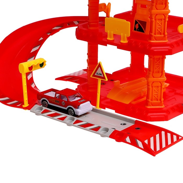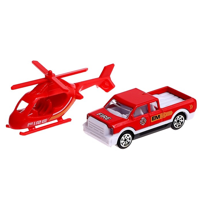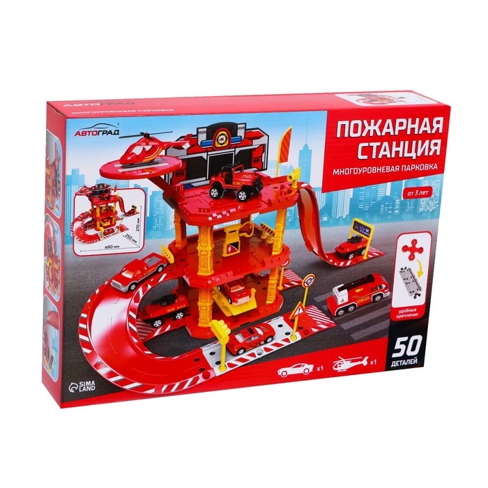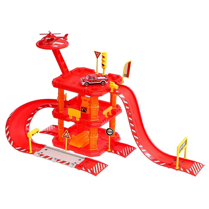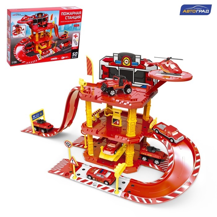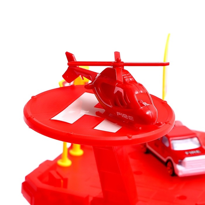 Парковка «Пожарная станция», с металлическими машинкой и вертолётом