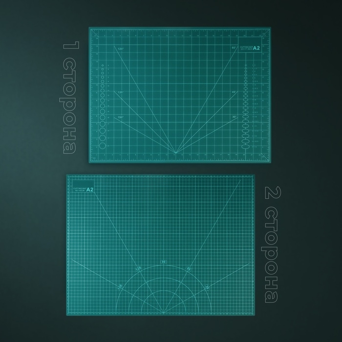 - Двухстороннее использование: с одной стороны на мате нанесены деления в сантиметрах, что удобно при работе с метрической системой измерений, а с другой стороны — деления в дюймах, что помогает при работе с имперской системой измерений.