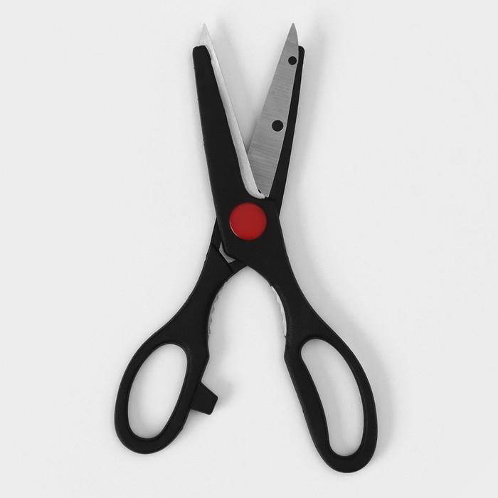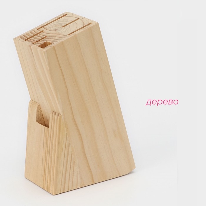 Набор ножей кухонных на подставке Доляна, 6 предметов: ножи 8 см, 11 см, 13 см, 19 см, 20 см, ножницы, цвет чёрный