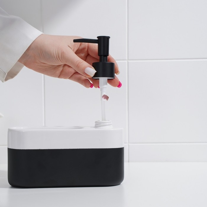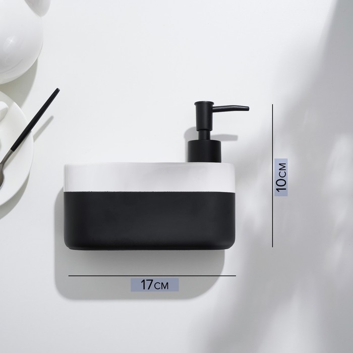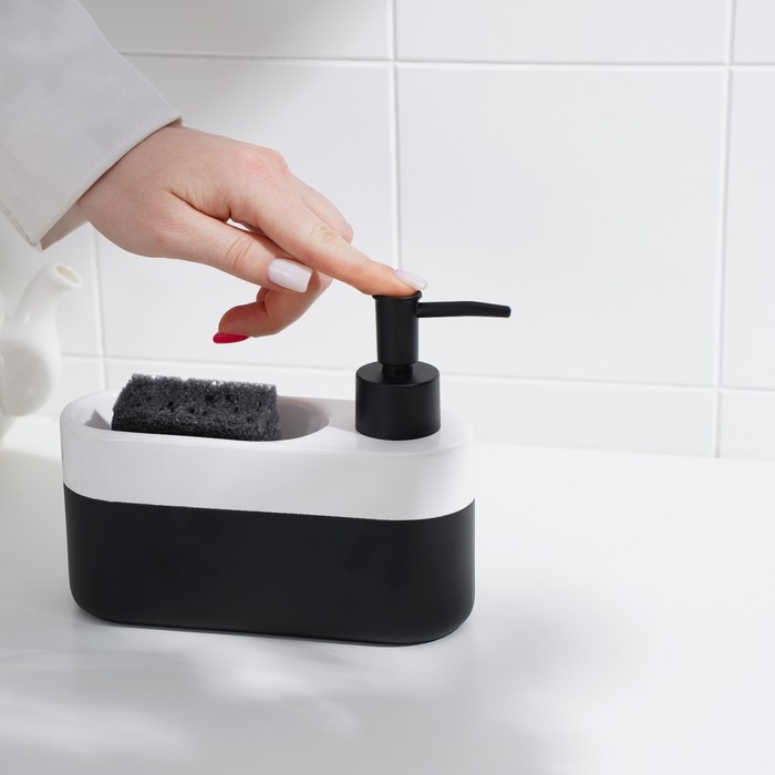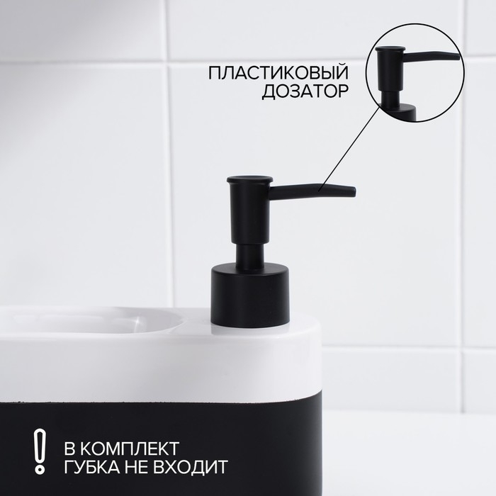 Дозатор для моющего средства с подставкой для губки Доляна, губка в комплекте, 385 мл, цвет белый
