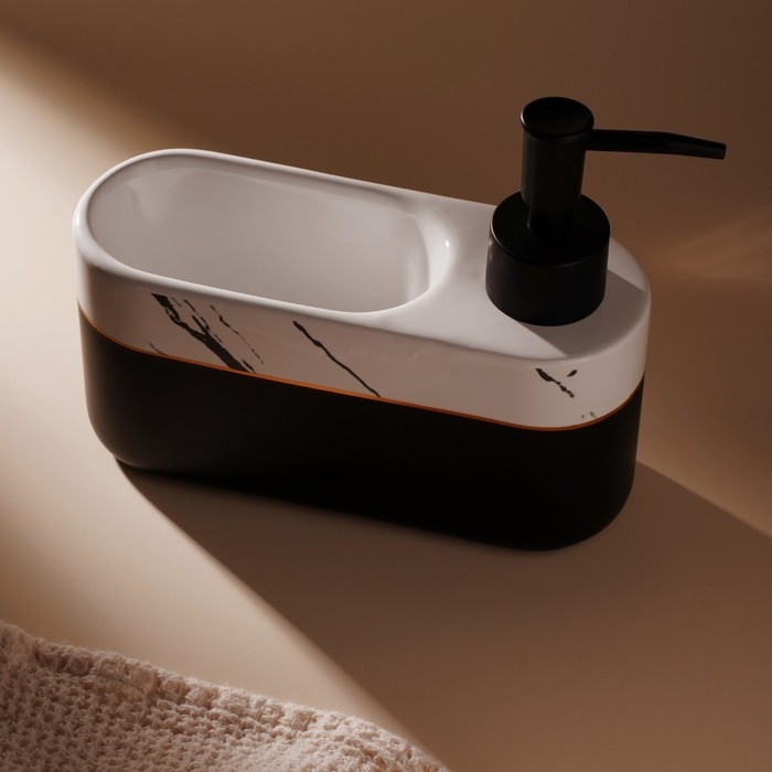 Представляем стильное и функциональное решение для вашей кухни или ванной комнаты — дозатор для мыла Lines с подставкой для губки от Sima-Land Home. Этот аксессуар, выполненный из качественной керамики, станет не только удобным помощником в быту, но и элегантным дополнением интерьера.