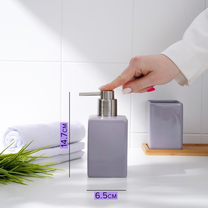 Набор аксессуаров для ванной комнаты SAVANNA Square, 3 предмета (дозатор для мыла, стакан, подставка), цвет сиреневый