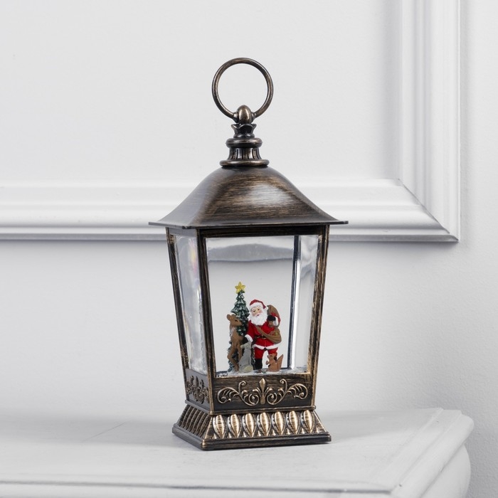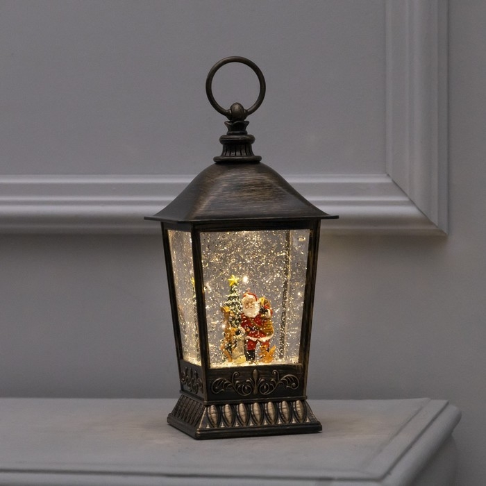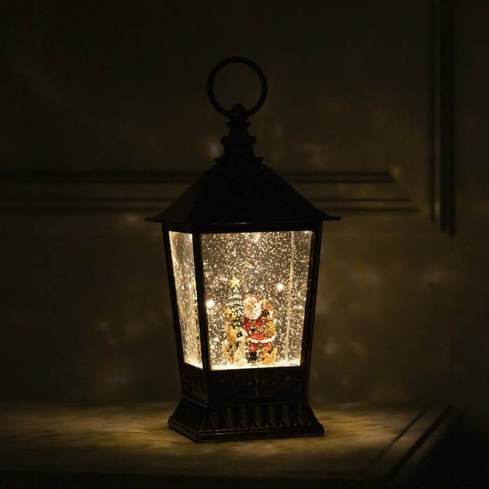 Светодиодная фигура «Фонарь с Дедом Морозом» 12 × 24 × 12 см, пластик, батарейки ААх3 (не в комплекте), USB, свечение тёплое белое