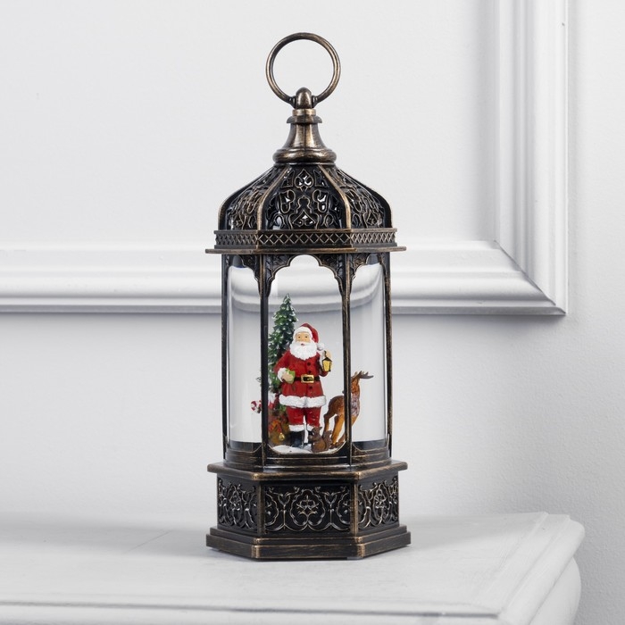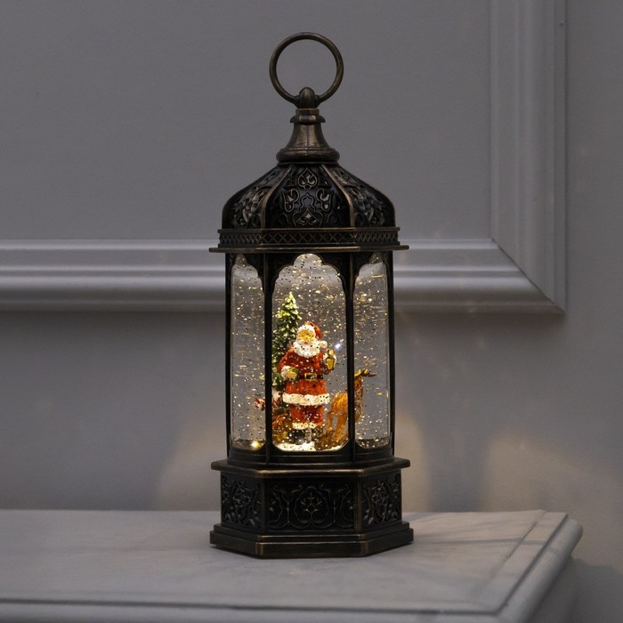 Светодиодная фигура «Фонарь с Дедом Морозом» 13 × 28.5 × 12 см, пластик, батарейки ААх3 (не в комплекте), USB, свечение тёплое белое