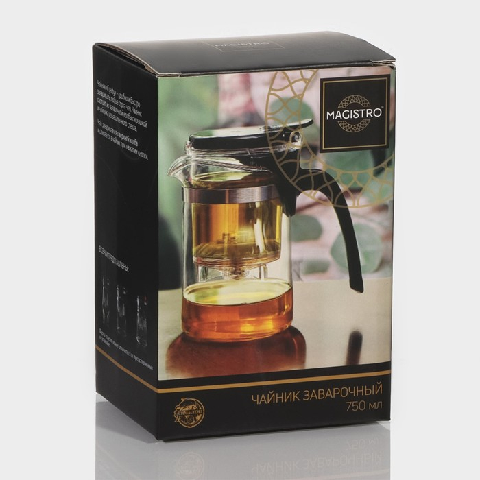 Чайник стеклянный заварочный Magistro «Мантана», 750 мл, с пластиковым ситом