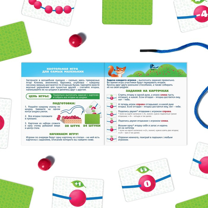 Настольная игра «Волшебное лукошко», 28 бусин, 24 карты, лукошко, 3+