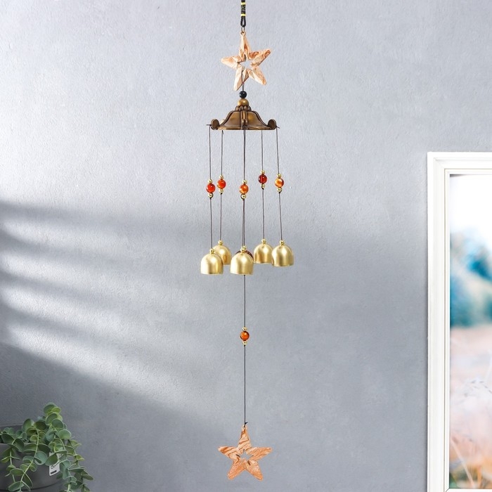 Музыка ветра металл "Звезда" песочная 5 колокольчиков 47х8х8 см