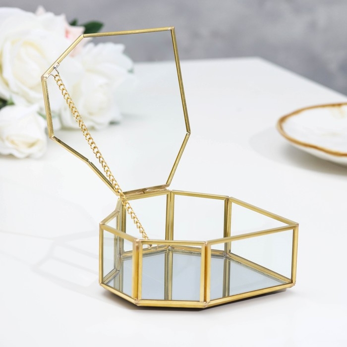 Шкатулка для колец "Сердце", 12х12х4 см, стекло