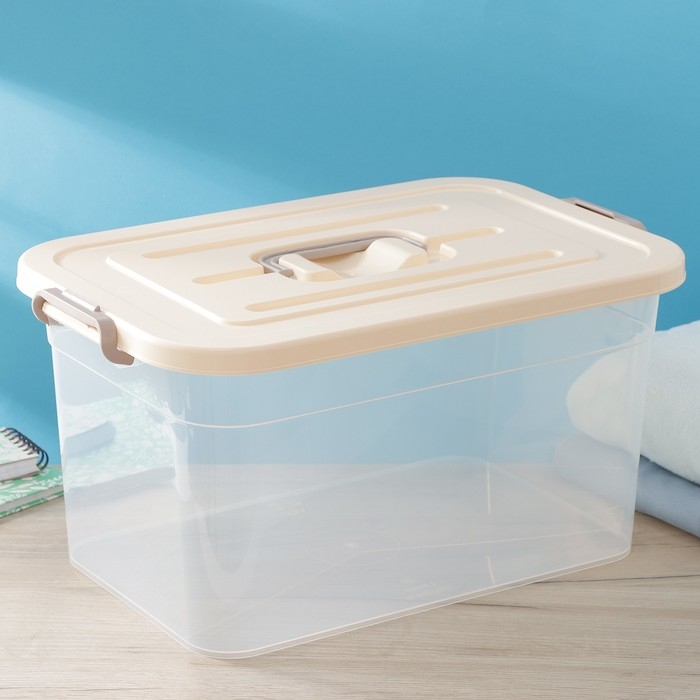 Контейнер для хранения с крышкой Доляна, 15 л, 41,5×27×22 см, цвет бежевый