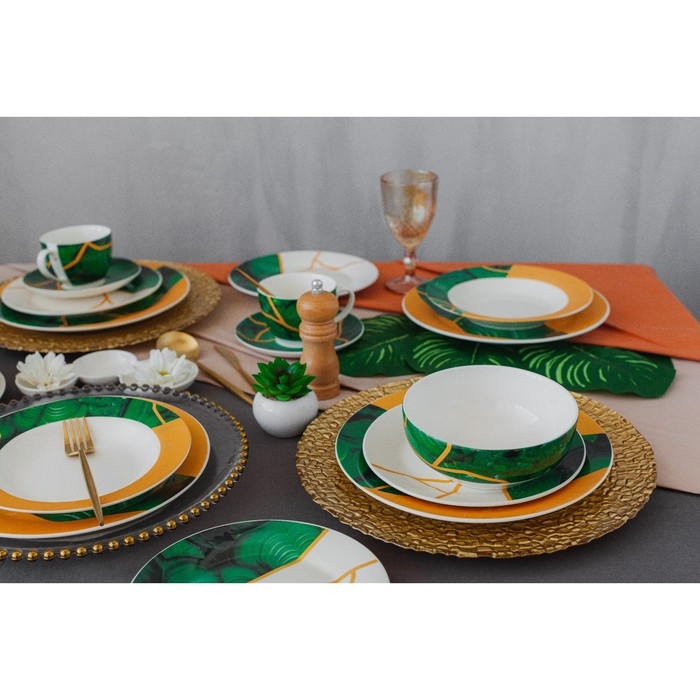 Фантастическая посуда с характерным рисунком природного малахита не оставят вас равнодушным. Завораживающие оттенки зеленого добавят колорита в ваш дом и придадут яркости в жизнь.