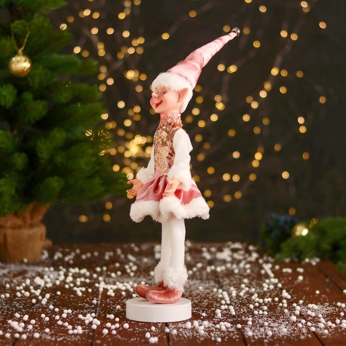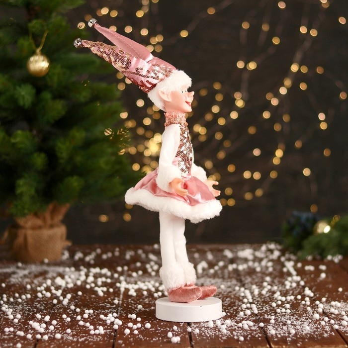 Новогодний шут "В платье с пайетками и мехом" 30 см, розово-белый