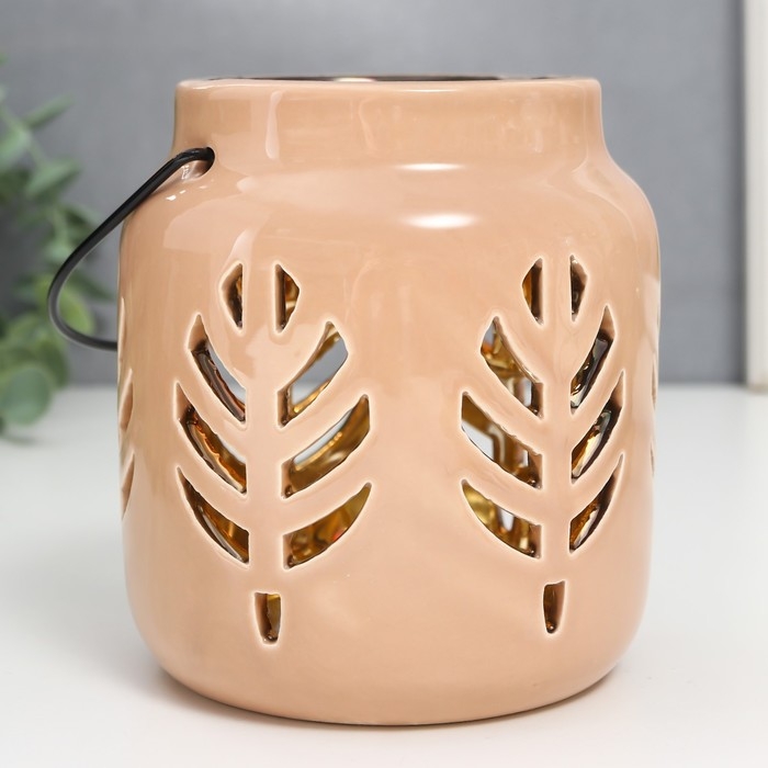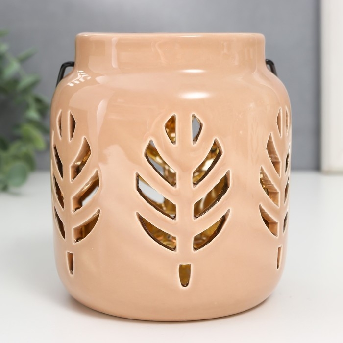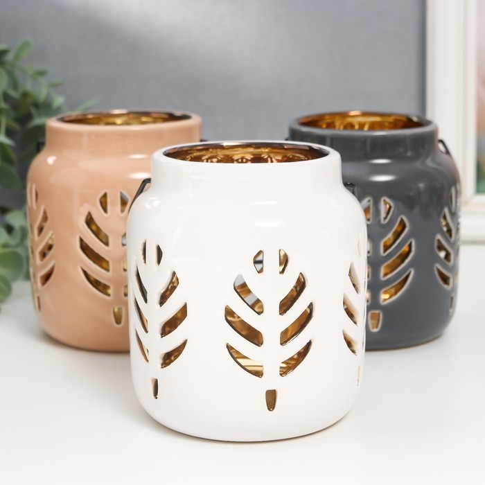Подсвечник керамика на 1 свечу "Фонарь. Листья" внутри золото МИКС 11,5х9,5х9,5 см