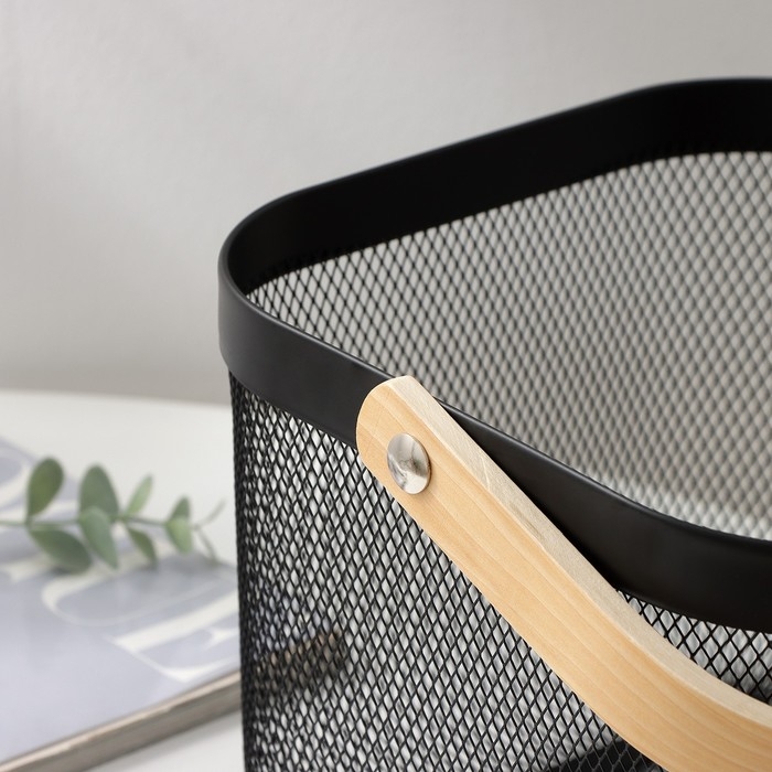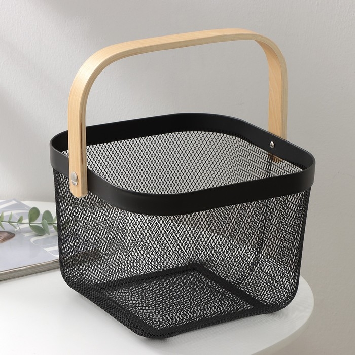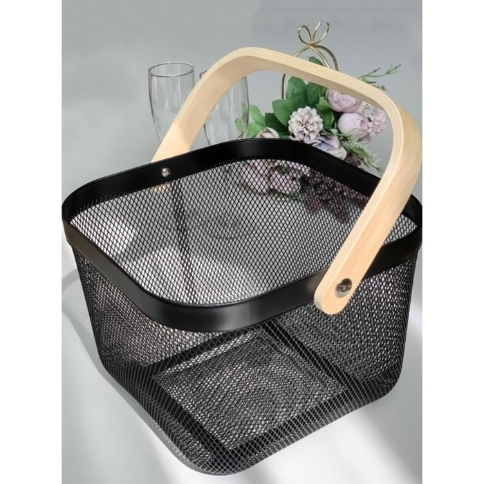 Корзинка выполнена из окрашенной стали, что гарантирует её долговечность. А удобная деревянная ручка поможет без труда перемещать корзинку или даже брать её с собой за продуктами или на пикник.