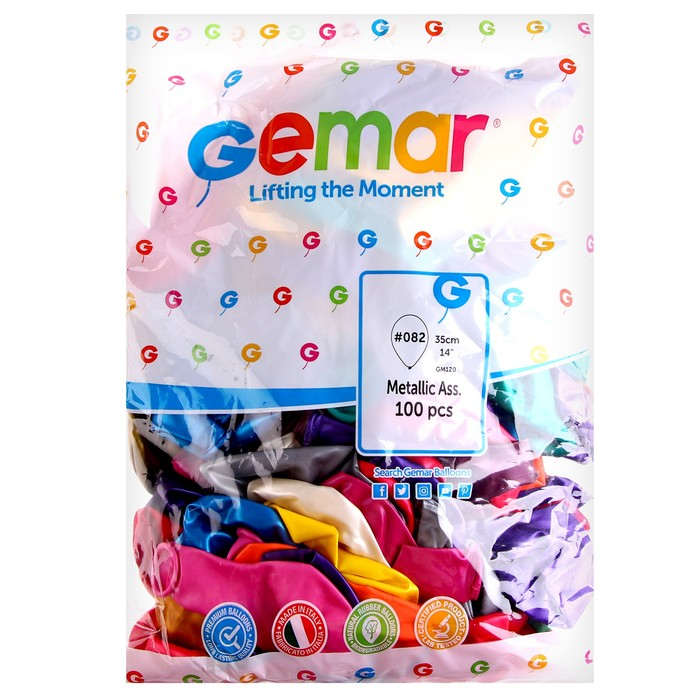 Шар латексный 14", металл, набор 100 шт., цвета МИКС