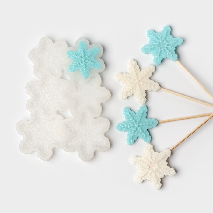 Силиконовый молд для леденцов и шоколада «Снежинки», 17×10×0.8 см, d=5 см, d=4.5 см, цвет прозрачный
