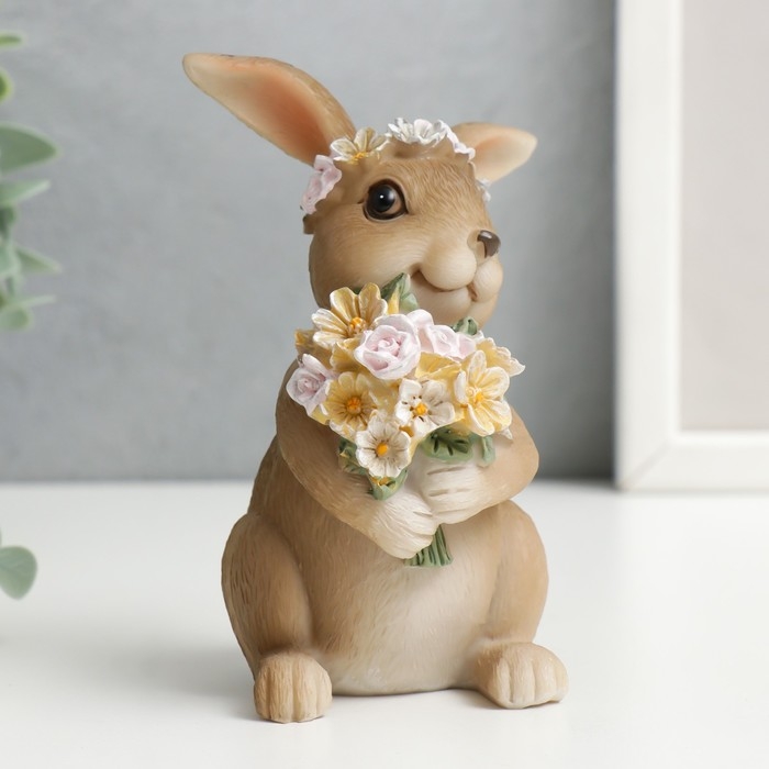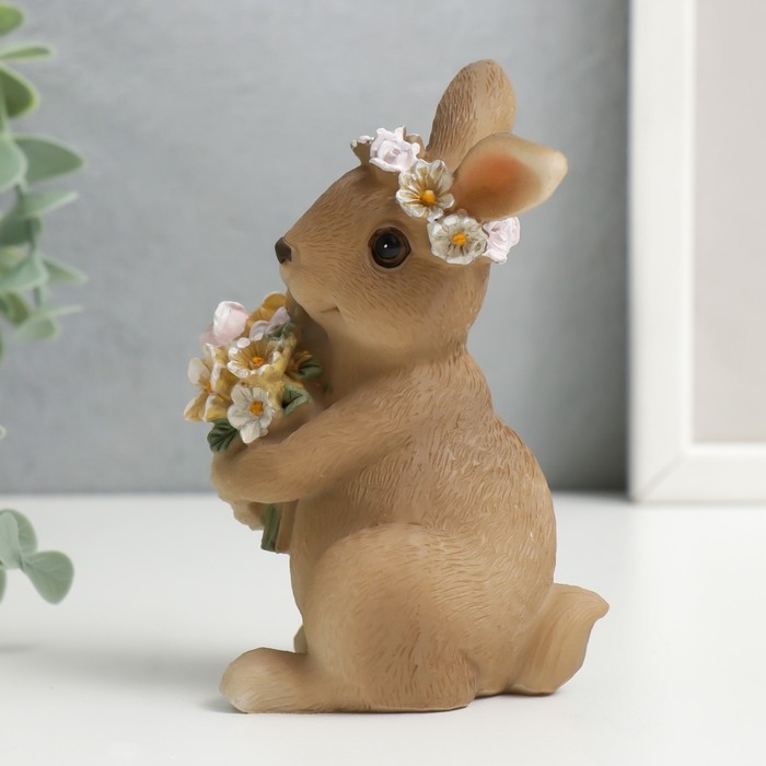 Сувенир полистоун "Кролик в цветочном венке и букетом цветов" 11х7,5х7,5 см