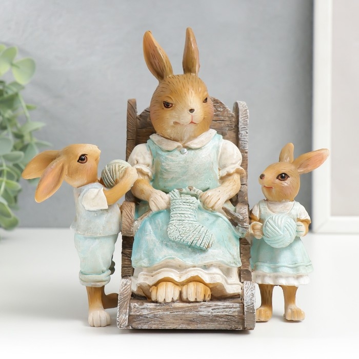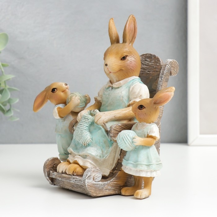 Сувенир полистоун "Зайка-бабуля с внучатами" 16,5х11х17,5 см