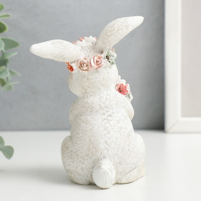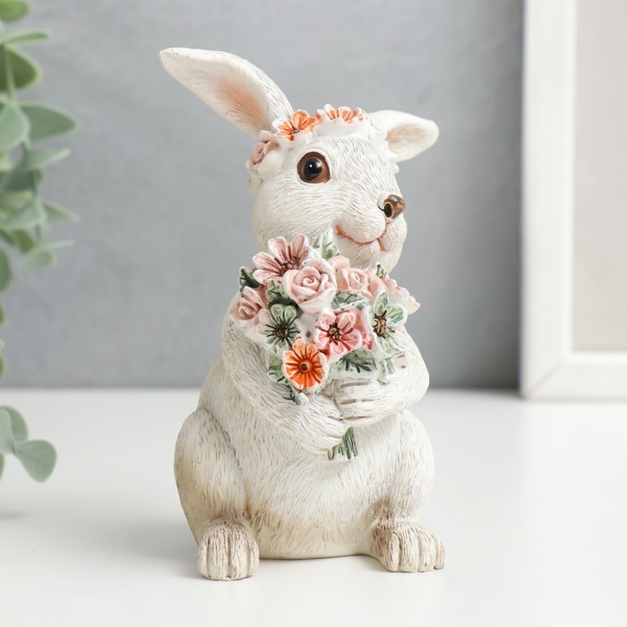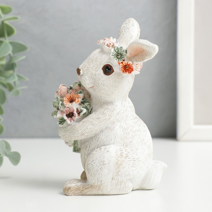 Сувенир полистоун "Зайка с охапкой цветов, в цветочном веночке" 11х7,5х7,5 см