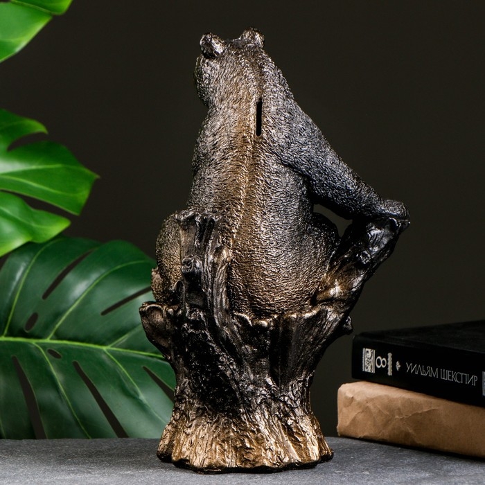 Копилка "Мишка на пне" бронза, 31см