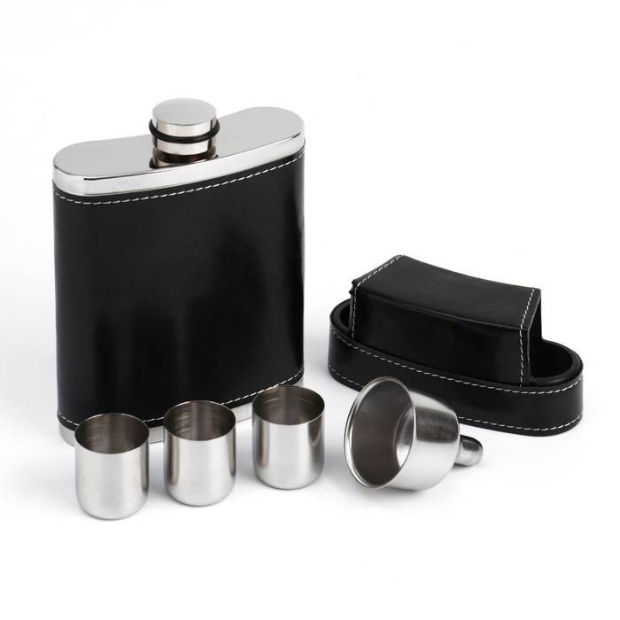 Фляжка для алкоголя и воды, нержавеющая сталь, чехол, 240 мл, 8 oz, 3 стопки и воронка