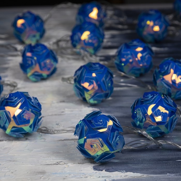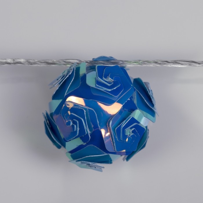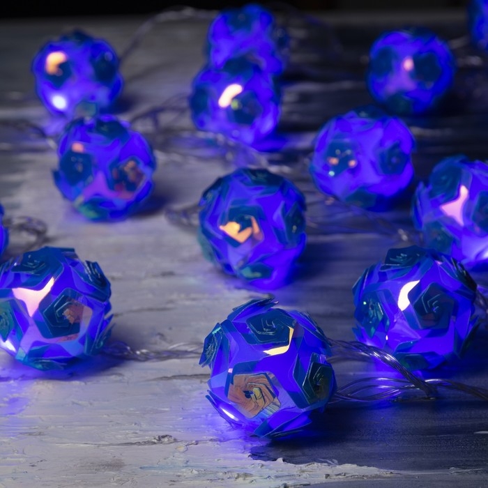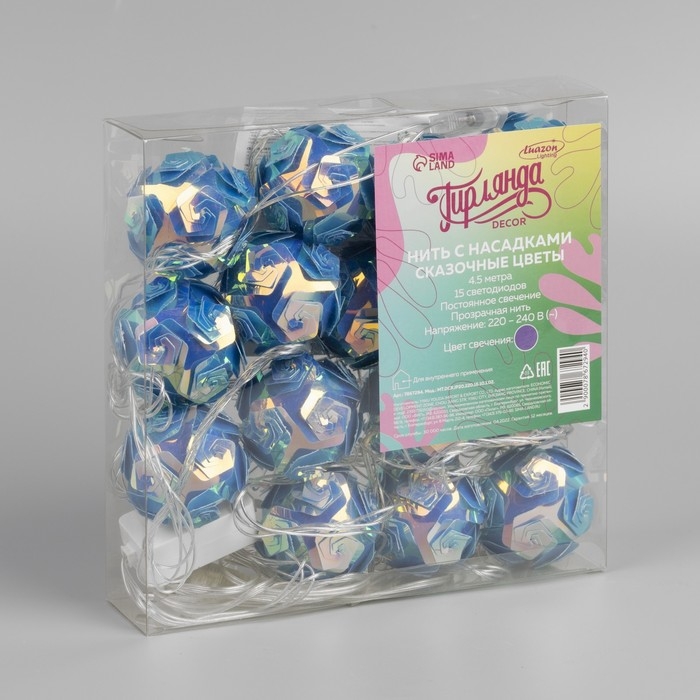 Гирлянда «Нить» 4.5 м с насадками «Цветочные шары», IP20, прозрачная нить, 15 LED, свечение фиолетовое, 220 В