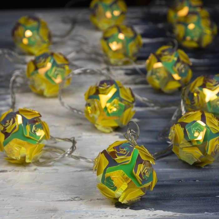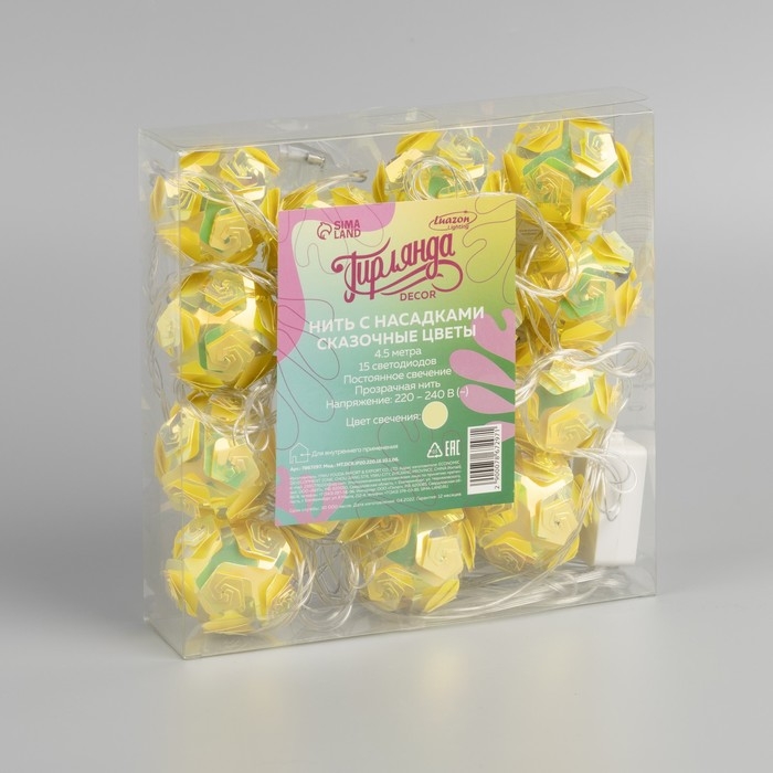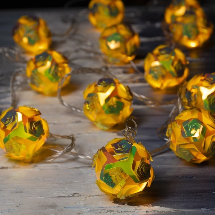 Гирлянда «Нить» 4.5 м с насадками «Цветочные шары», IP20, прозрачная нить, 15 LED, свечение тёплое белое, 220 В