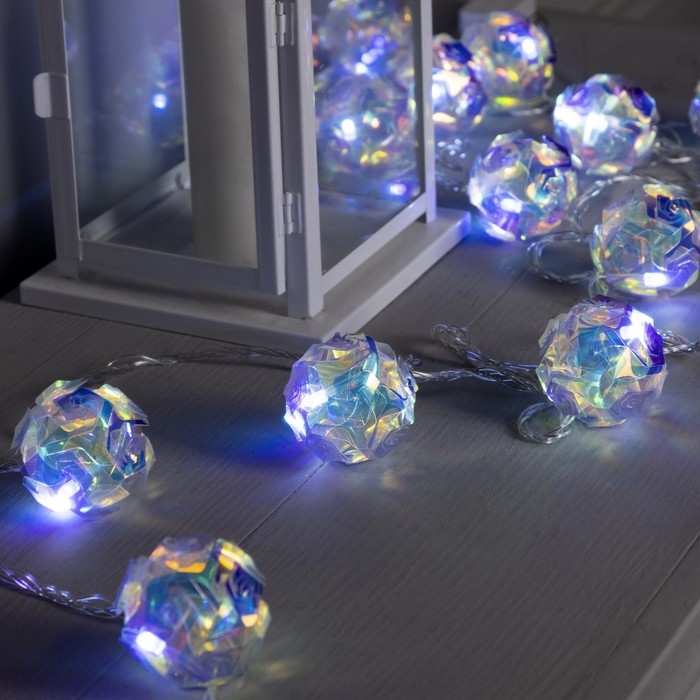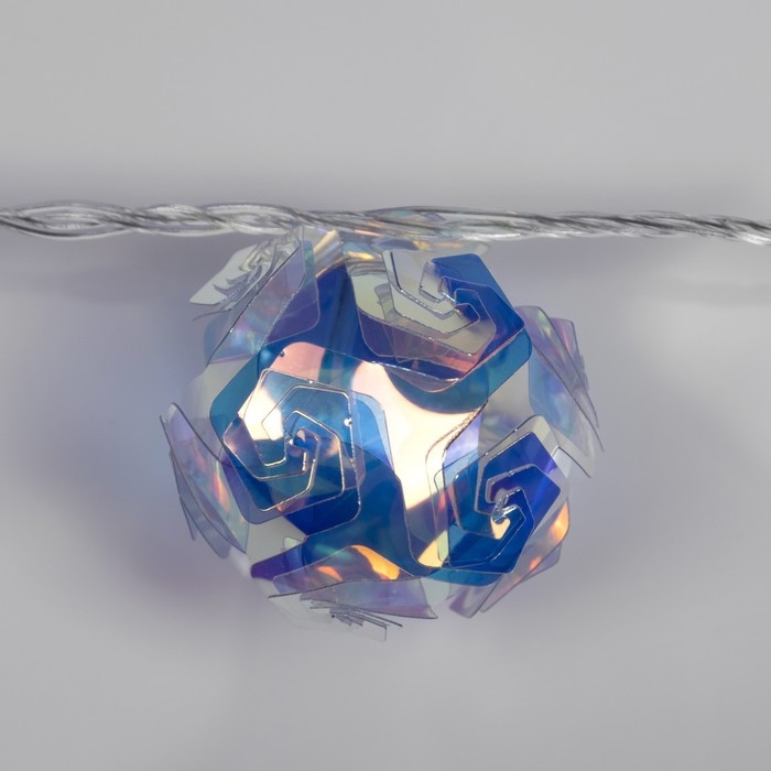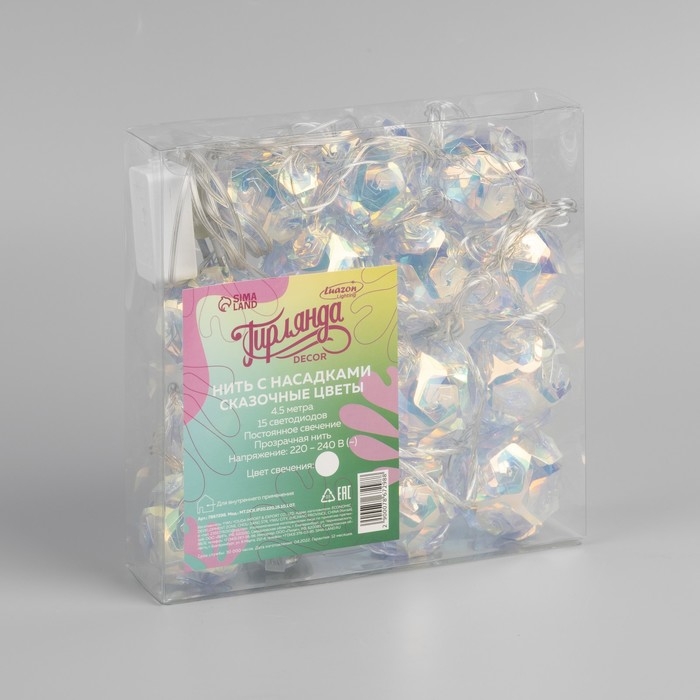 Гирлянда «Нить» 4.5 м с насадками «Цветочные шары», IP20, прозрачная нить, 15 LED, свечение белое, 220 В