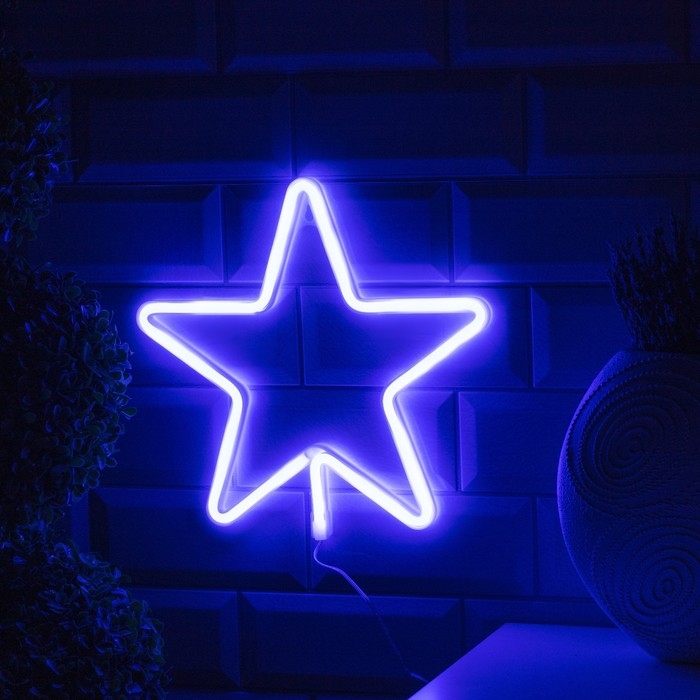 Неоновая вывеска «Звезда» 28 × 28 см, батарейки ААх3 (не в комплекте), USB, свечение голубое