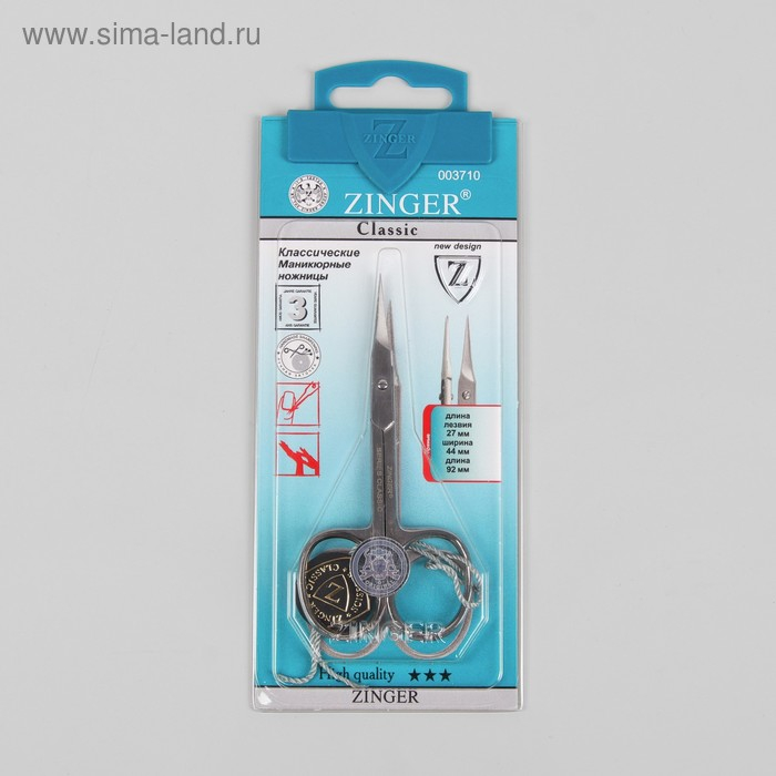 Ножницы маникюрные, для кутикулы, прямые, 9,5 см, на блистере, цвет серебристый, B-117-S-SH