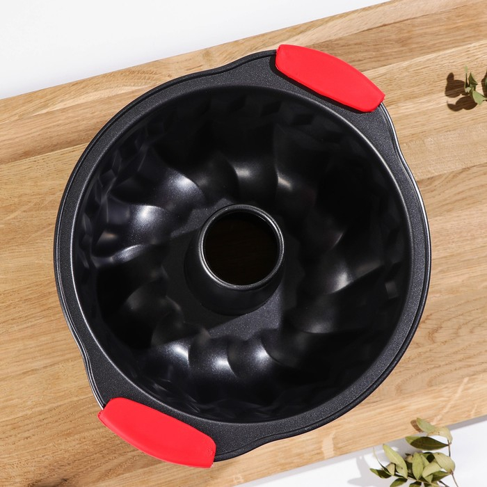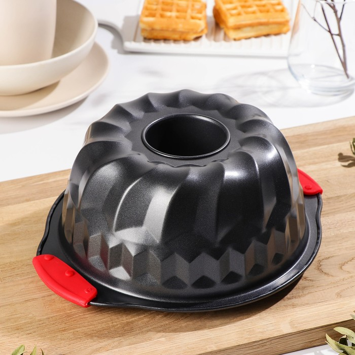 Форма для выпечки Доляна «Немецкий кекс. Забота», 28×23,5×10,5 см, с силиконовыми ручками, антипригарное покрытие, цвет чёрный