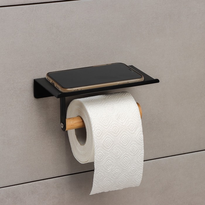 Держатель для туалетной бумаги с полочкой BAMBOO, 18×9,7×7,5 см, цвет чёрный