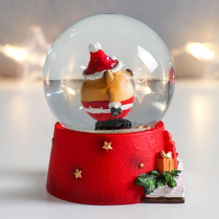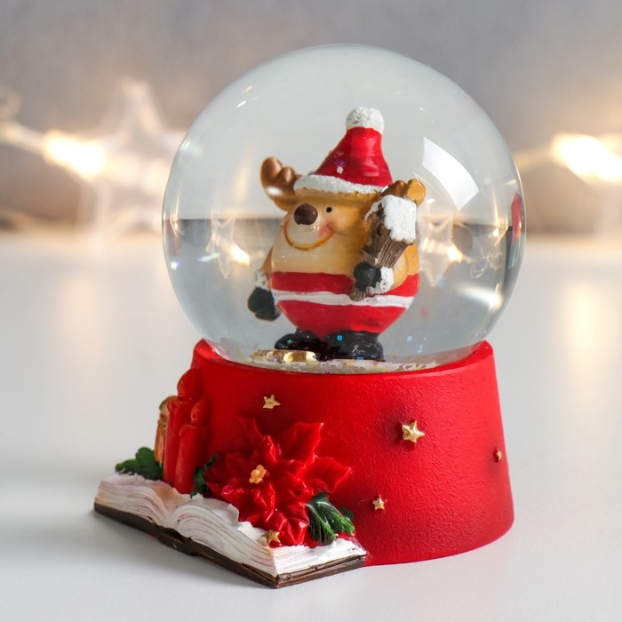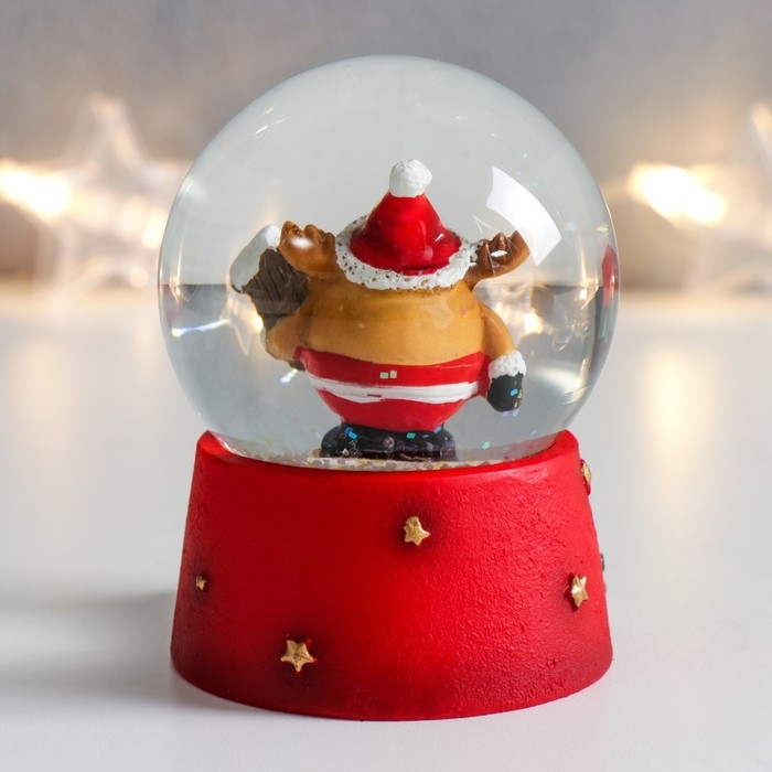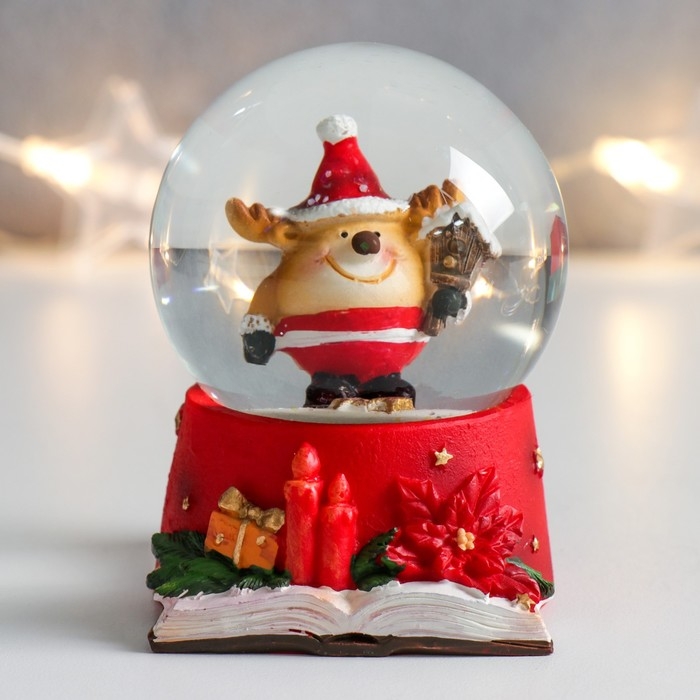 Сувенир полистоун водяной шар "Олень-пухляш со скворечником" 6,5х6,5х8,5 см