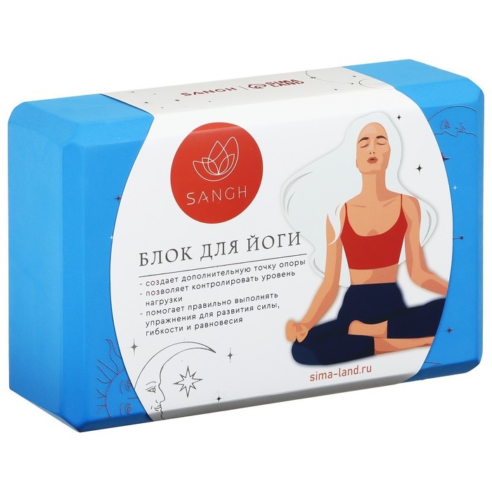 Блок для йоги Sangh Moon, 23х15х8 см, цвет синий