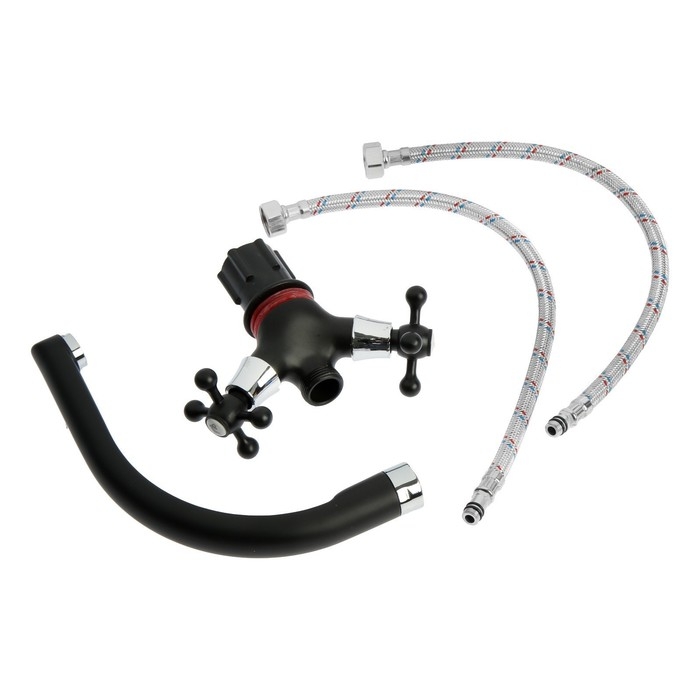 Смеситель для кухни ZEIN ZC2023, кран-букса латунь 1/2", двухвентильный, черный