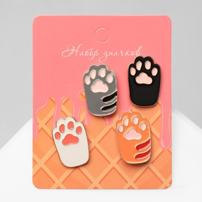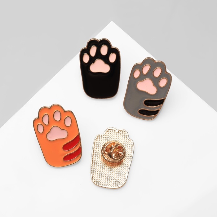 Набор значков (4 шт.) «Лапки» кошачьи, цветной в золоте