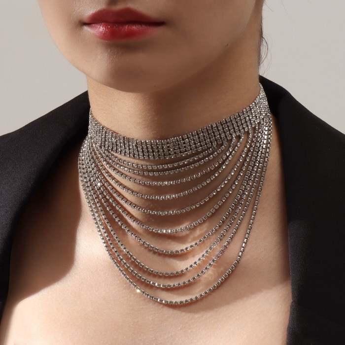 Колье «Водопад» волна, цвет белый в серебре, 25 см