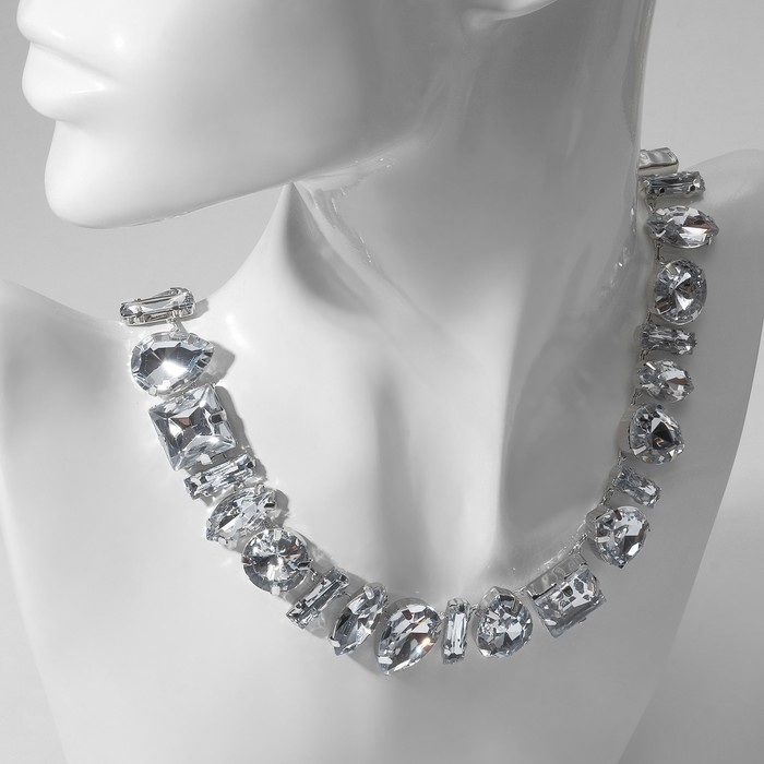 Колье «Лёд», 1 ряд, цвет белый в серебре, 35 см