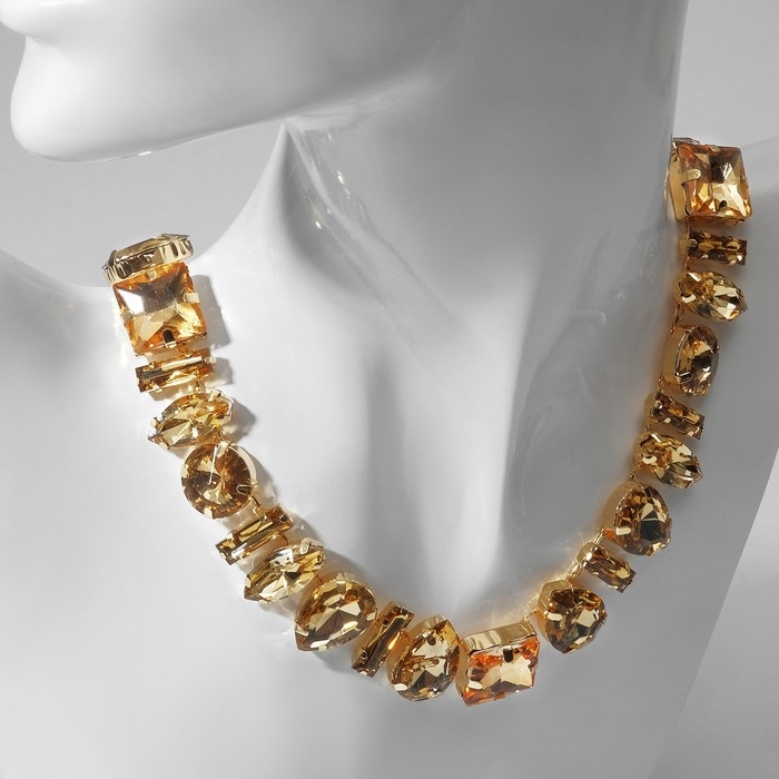 Колье «Драгоценность» геометрия, цвет жёлтый в золоте, 32 см