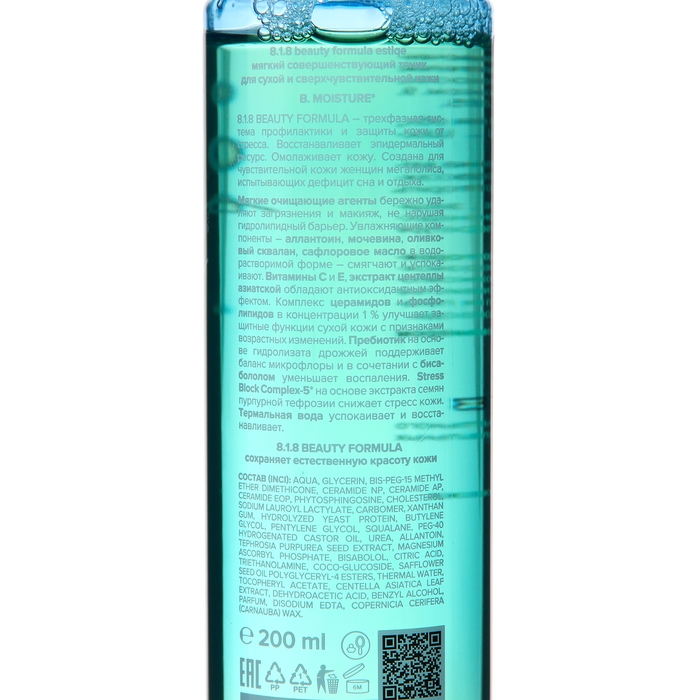 Тоник 8.1.8 Beauty Formula Estiqe для сухой и сверхчувствительной кожи, 200 мл