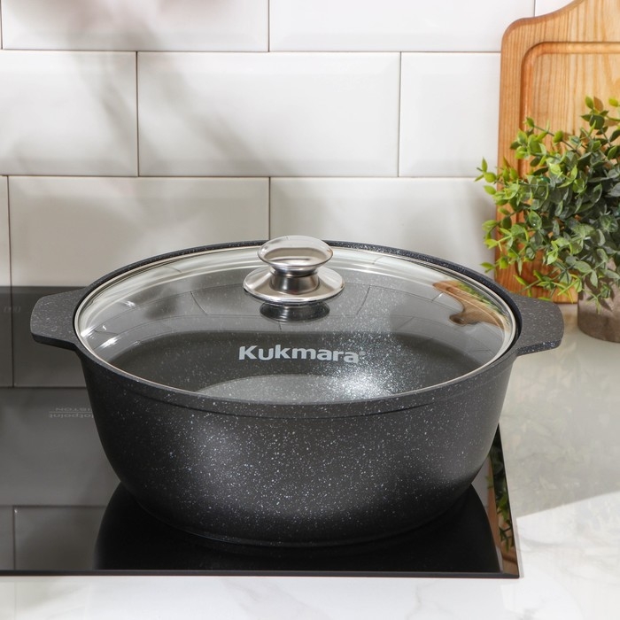 Кастрюля Kukmara сделана из литого алюминия и имеет уникальное ультрапрочное антипригарное покрытие Ultra granit.