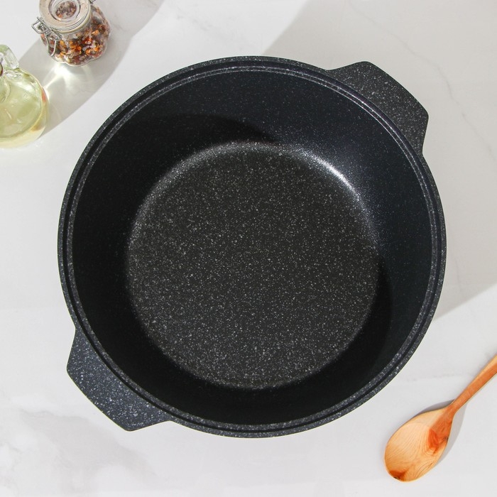 Жаровня «Гранит Black» Induction Pro, 3 л, d=28 см, стеклянная крышка, антипригарное покрытие, индукция, цвет чёрный