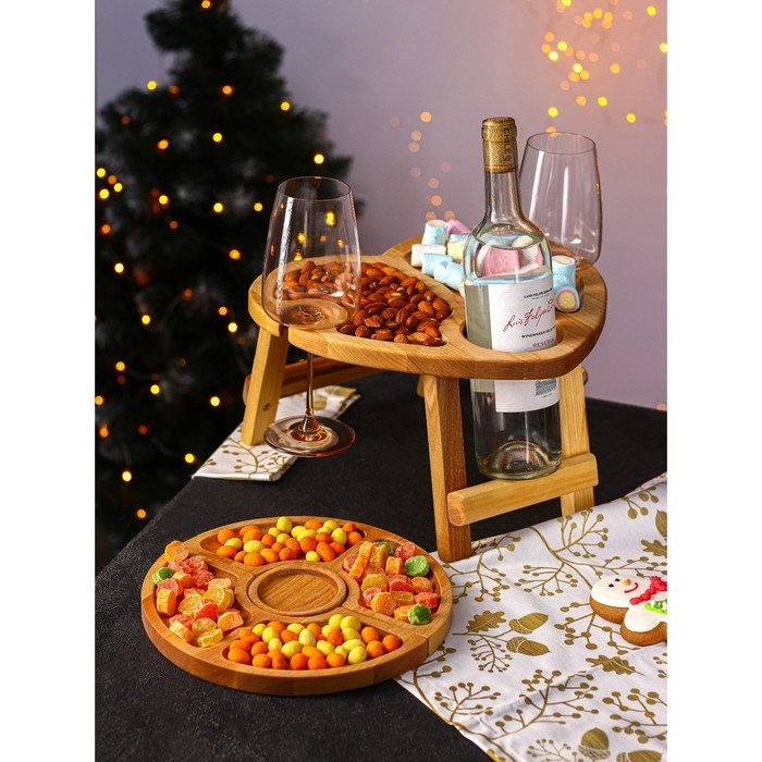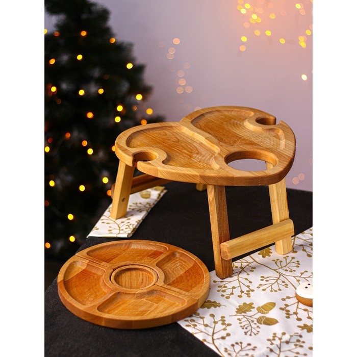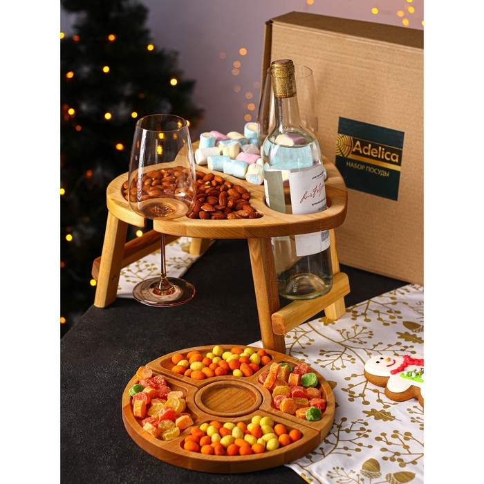 Подарочный набор деревянной посуды Adelica «Винный», столик для вина d=32 см, менажница d=25 см, подсвечник d=8 см, берёза