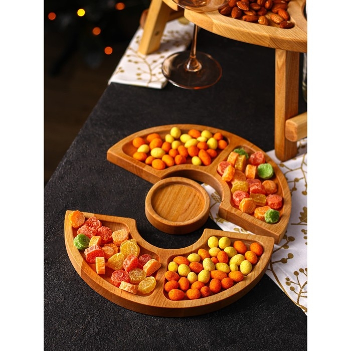 - Менажницу нужно обязательно мыть вручную в тёплой воде. Замачивание изделия в раковине повредит его: от воды древесина может испортиться.