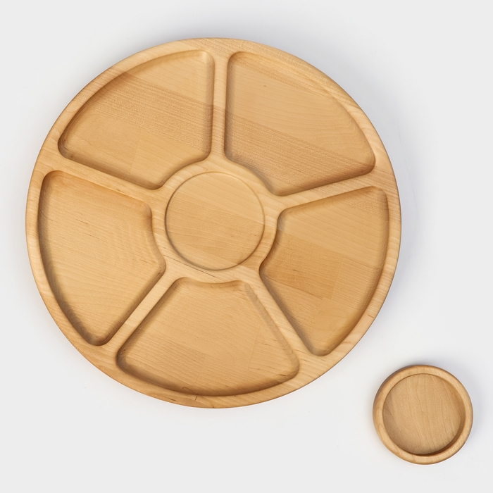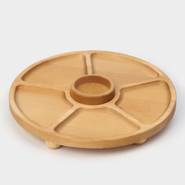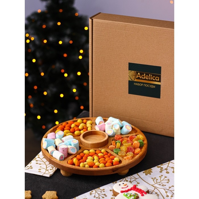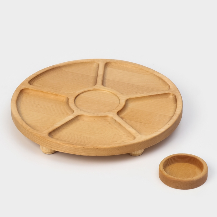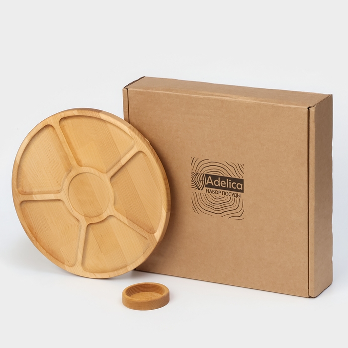 Подарочный набор деревянной посуды Adelica «Фортуна», менажница на ножках с соусницей, d=30 см, 70 мл, берёза
