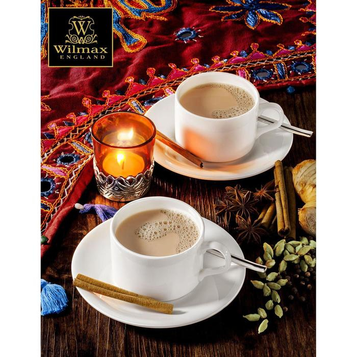 Кофейная пара фарфоровая Wilmax Stella, 2 предмета: кружка 140 мл, блюдце, цвет белый