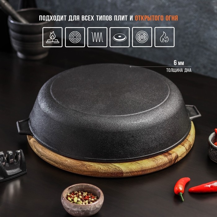 Сковорода-гриль литая чугунная Magma, d=28 см, h=6 см, с двумя ручками, чугунная крышка, индукция